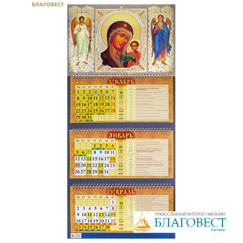 Православный квартальный календарь Пресвятая Богородица «Казанская» на 2026 год