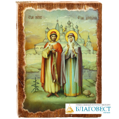 Икона под старину Святые благоверные Петр и Феврония Муромские, размер 14,5х20см, дерево
