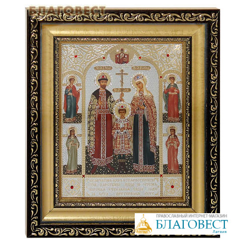 Икона святые Царственные мученики. Киот (узкий), багет, стразы, стекло