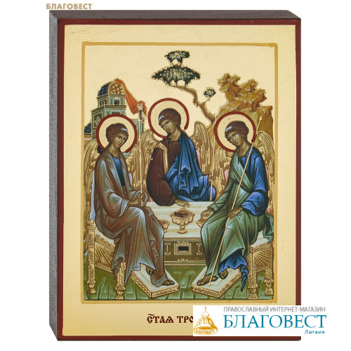 Икона ручной работы "Святая Троица". Поталь (позолота) наносится вручную