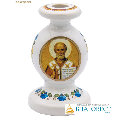Подсвечник с ликом Святителя Николая Чудотворца, высота 5,5см, диаметр отверстия 8мм, керамика