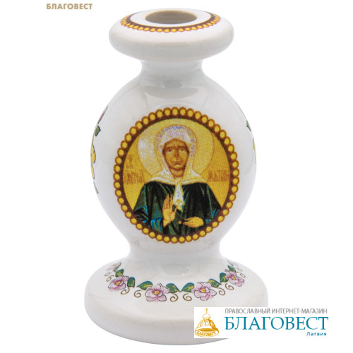 Подсвечник с ликом Святой блаженной Матроны Московской, высота 5,5см, диаметр отверстия 8мм, керамика