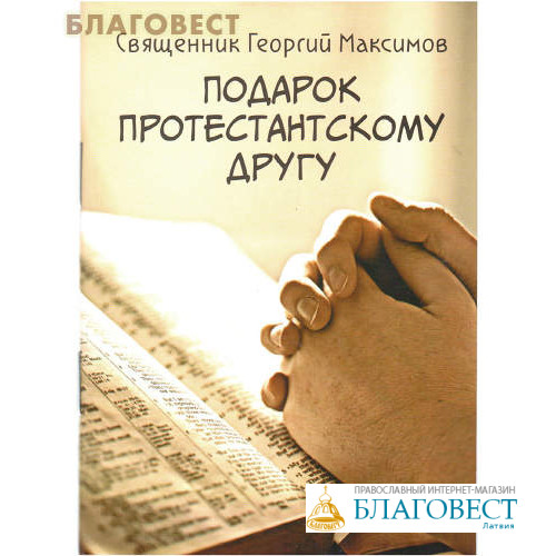 Брошюра священника Георгия Максимова «Подарок протестантскому другу» в спокойной и благожелательной манере отвечает на наиболее частые вопросы протестантов к православным и предлагает рассмотреть в свете Библии наши главные различия. Она написана не с целью обвинять в чем-либо протестантов, а с целью разобраться с тем, что же мешает нам быть «едино».