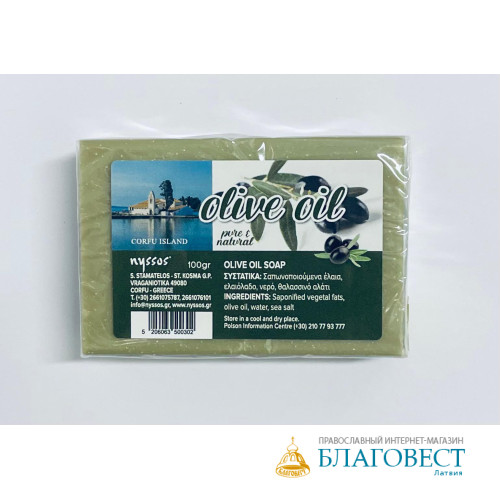 Мыло ручной работы на оливковом масле, 100 гр. NYSSOS Corfu, Греция