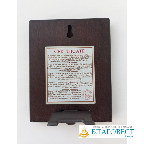 Икона освящена у чудотворной иконы монастыря Ватопед, Святая Гора Афон.