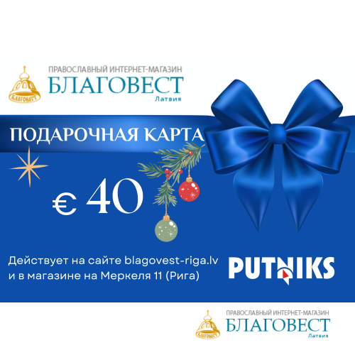 Подарочная карта на приобретение всех товаров в интернет-магазине blagovest-riga.lv и в магазине на Меркеля 11 (Рига).