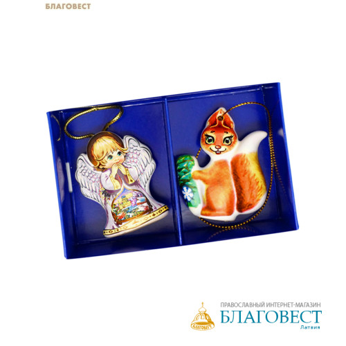 Набор из 2-х елочных игрушек Ангел и Белочка, высота 6см, керамика