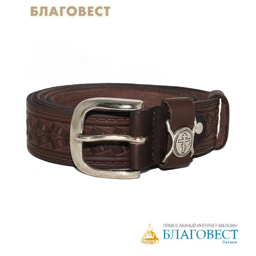Православный ремень сделан из шорно-седельной кожи растительного дубления без покрывного крашения! На изделие методом объемного тиснения нанесен 90 псалом царя Давида и молитва Кресту Господню. Цвет коричневый.