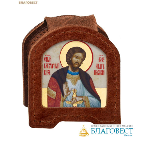 • Икона дорожная раскладная Святой благоверный князь Александр Невский (натуральная кожа). Цвет коньяк