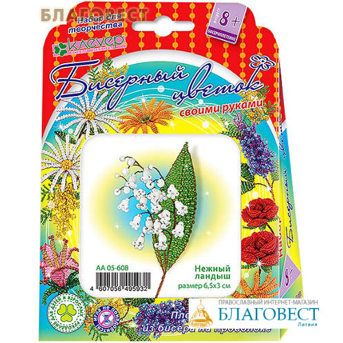 Комплект предназначен для детей от 8 лет. В наборе цветной бисер и проволока. Прилагается инструкция со схемой плетения.