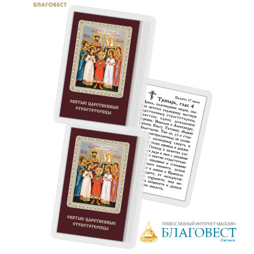 Икона Святые Царственные страстотерпцы ламинированная, с молитвой, размер 5,5х8,5см, (упаковка 10шт)