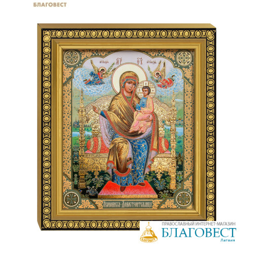 Изображение иконы Пресвятая Богородица «Экономисса (Домостроительница)» выполнено с использованием полиграфической печати с золотым тиснением. Тонкий слой ламинации надежно защищает изображение от внешних воздействий. Икона помещена в аккуратную рамку со стеклом. В комплекте с каждой иконой идет молитва. Размер печатного изображения иконы 10х12 см. Размер рамки 12,5х14,5 см.