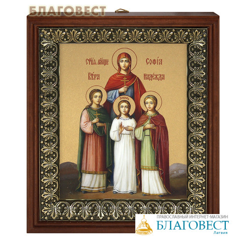 Икона "Святые мученицы Вера, Надежда, Любовь и мать их София", размер 13*16см, золочение поталью