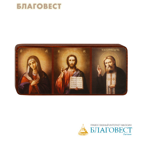 Триптих "Господь Вседержитель, ПБ Умиление, прп. Серафим Саровский" на деревянной основе