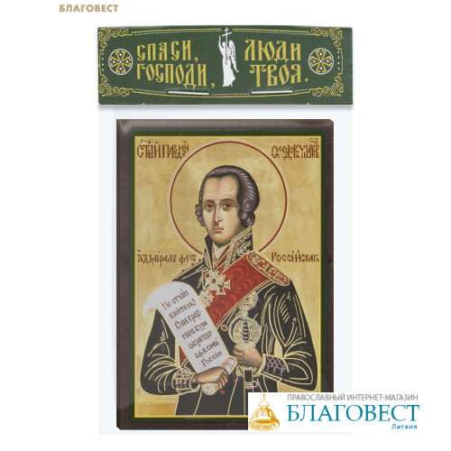 Икона Святой праведный адмирал флота Российкого Феодор Ушаков 6х9см, МДФ, полиграфия