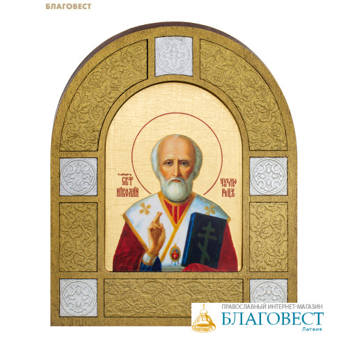 Икона арочная Святитель Николай Чудотворец, дерево, размер 11,5х14см
