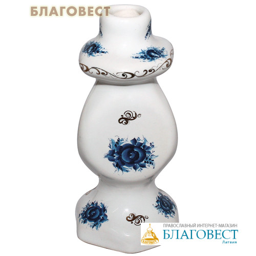 Подсвечник выполнен из фарфора. Деколь. Сделано в России.Фарфор - благороднейший и наиболее совершенный вид керамики. Фарфоровую смесь тщательно вымешивают, процеживают и отливают в специальные формы. Отформованные предметы трижды обжигают: сначала до температуры 700-800 градусов, затем покрывают глазурью и обжигают до 1200-1350 градусов, после изделия расписывают и снова отправляют в печь, чтобы роспись была яркой и стойкой.Недаром фарфор величают «белым золотом». Его издревле изготавливают по всему миру. Само слово «фарфор» созвучно со словом Фавор. «Гора Фавор, земное небо, отрада души и услаждение глаз православных людей. Ибо этой горе присуща преосеняющая ее некая божественная благодать, оттого она и возбуждает духовную радость» - сказал свт. Григорий Палама. Так и изделия из фарфора изготавливаются не только для пользы, но для души, чтобы радовать глаз и греть душу.