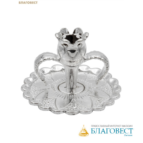 • Подсвечник в индивидуальной пластиковой упакавке, металл, цвет серебро, диаметр отверстия 6мм